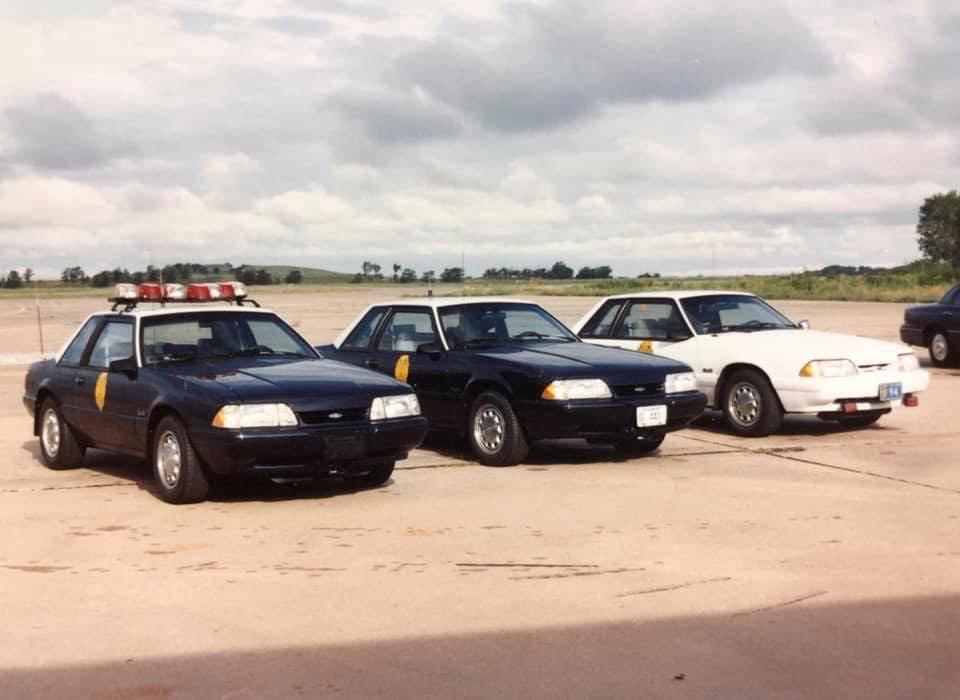 1992 Kansas Highway Patrol. Shows both versions of the Blue & Grey KHP, along with a white 92 Turnpike car. Photo courtesy of Christopher Noe.