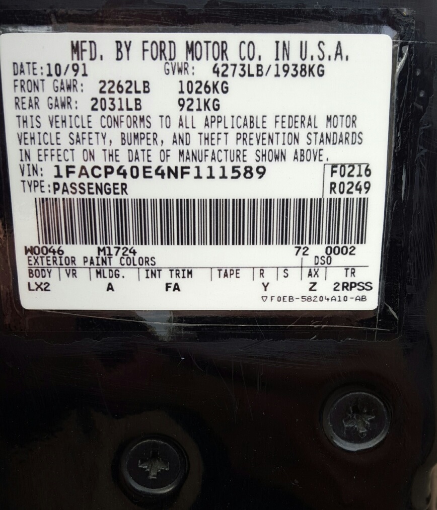 1992 - VIN 1FACP40E4NF111589