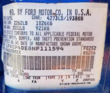 1992 - VIN 1FACP40E8NF111594