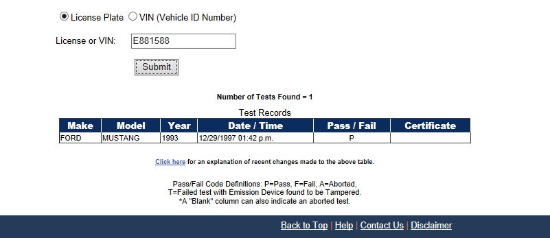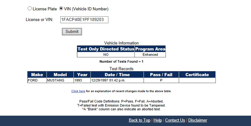 Using the State of California Smog Certificate Website to search for VINs and