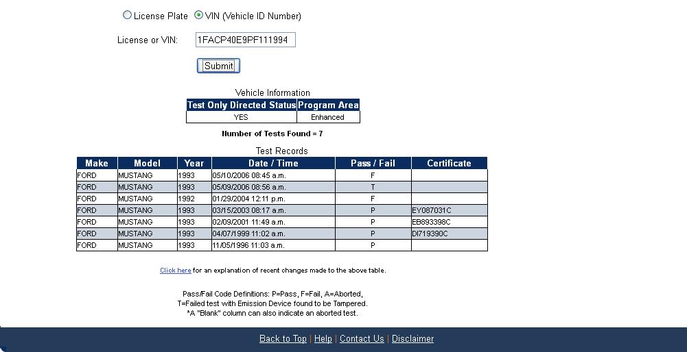 Using the State of California Smog Certificate Website to search for VINs and Used in compliance with the requirements set forth by the Department of Consumer Affairs in their authorization for proper use of information published on their website. |