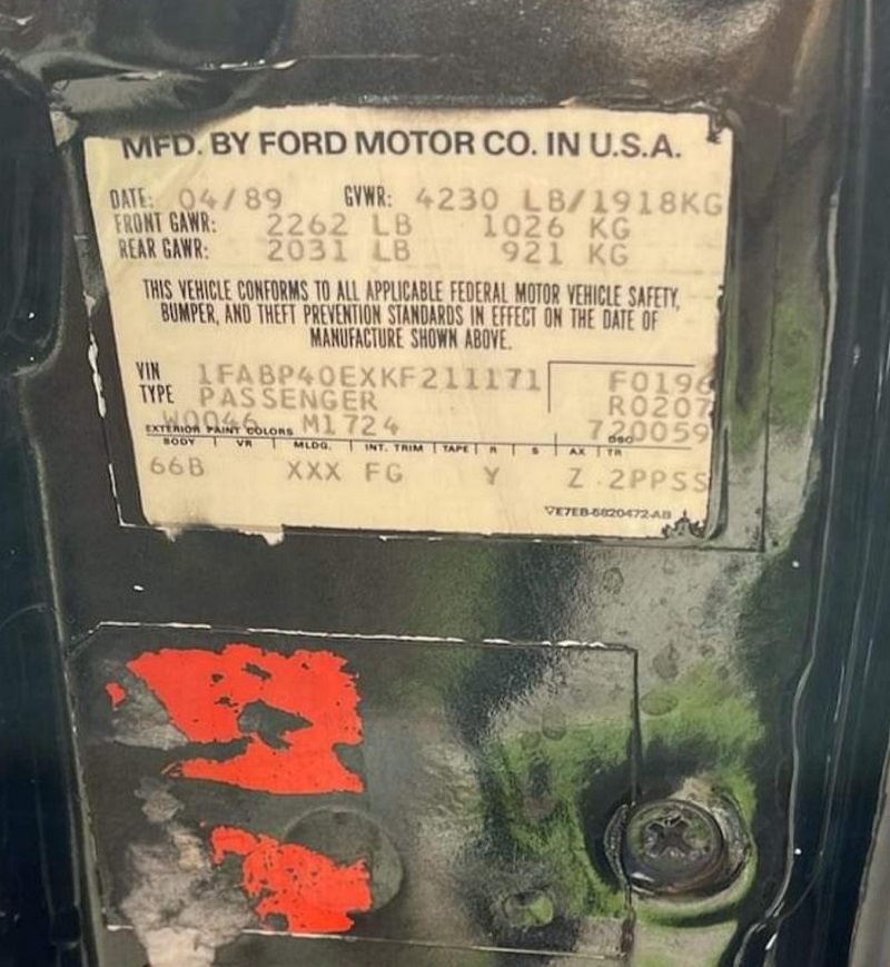 1989 SSP - VIN 1FABP40EXKF211171