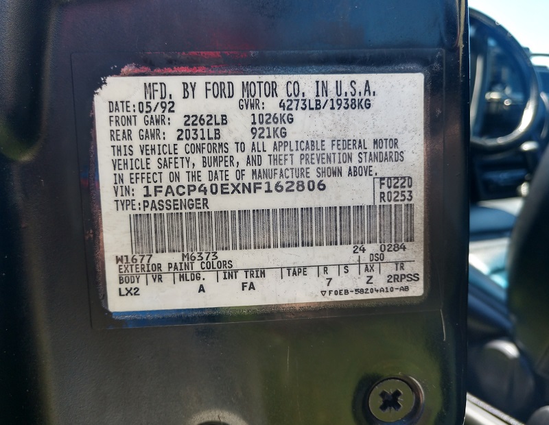 1992 SSP - VIN 1FACP40EXNF162806