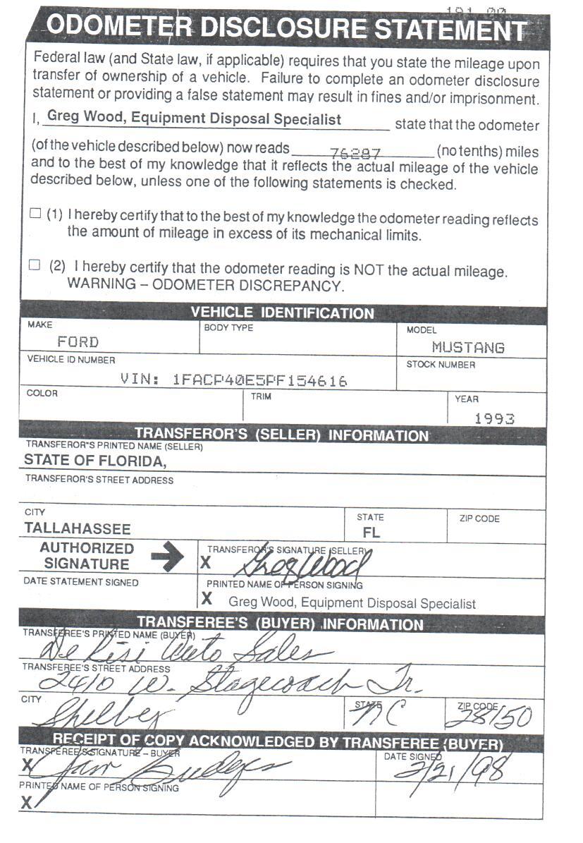 1993 SSP - VIN 1FACP40E5PF154616