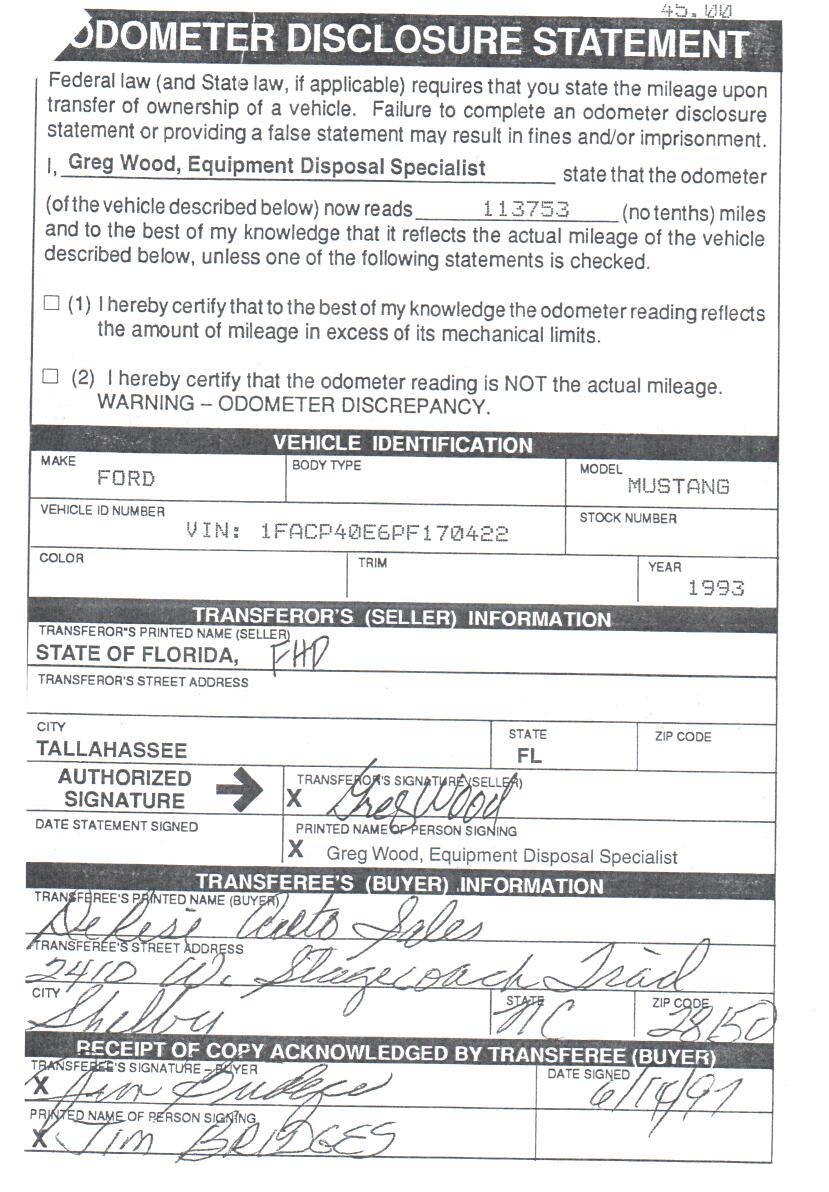 1993 SSP - VIN 1FACP40E6PF170422