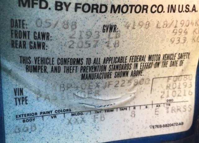 1988 SSP - VIN 1FABP40EXJF225800