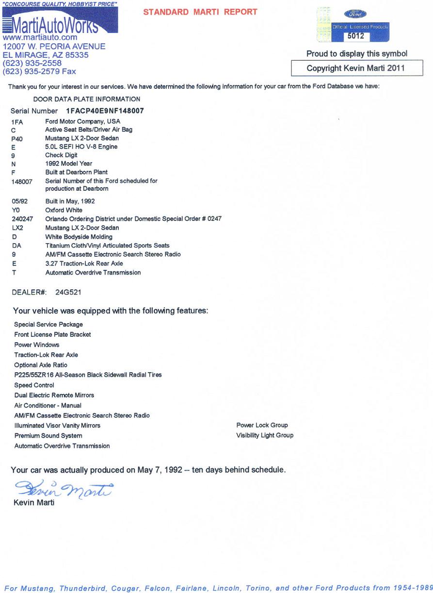 1992 SSP - VIN 1FACP40E9NF148007