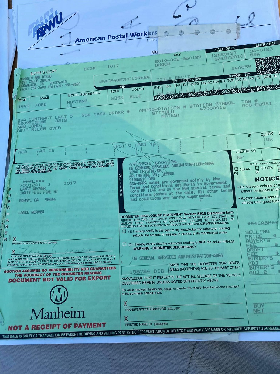 1993 SSP - VIN 1FACP40E7PF159624