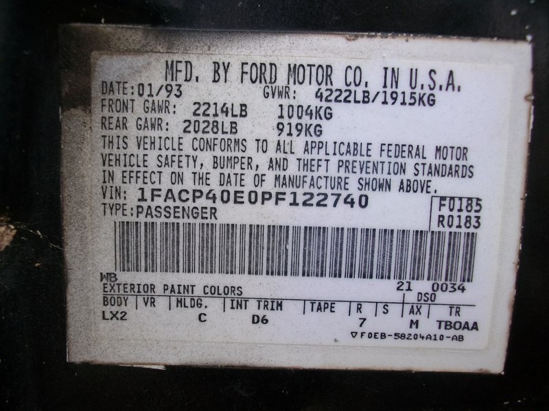 1993 SSP - VIN 1FACP40E0PF122740