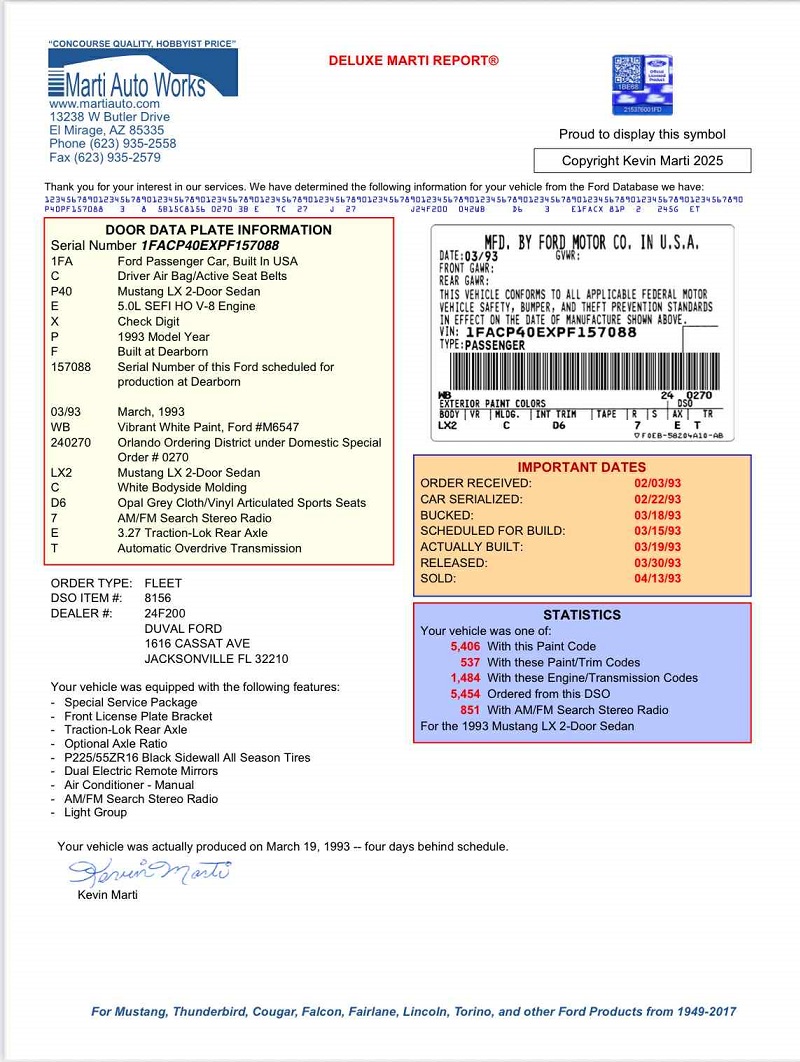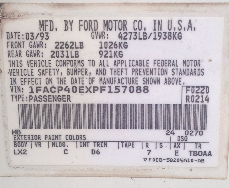 1993 SSP - VIN 1FACP40EXPF157088