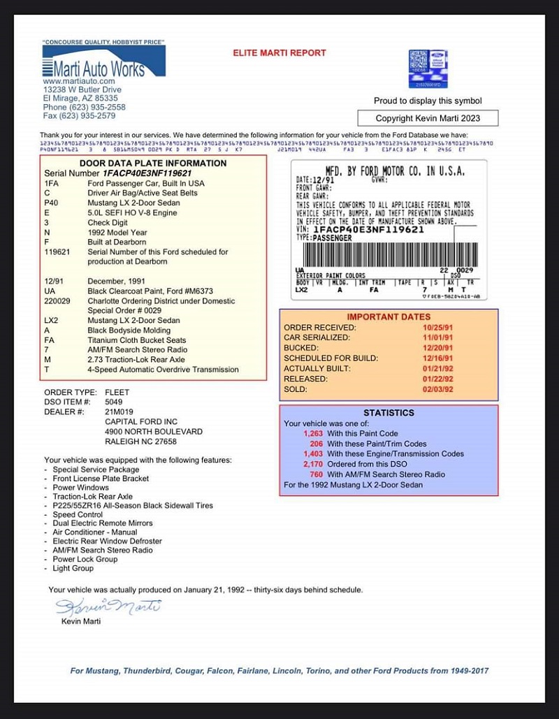 1992 SSP - VIN 1FACP40E3NF119621