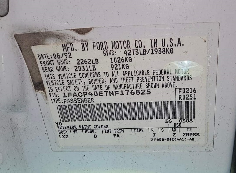 1992 SSP - VIN 1FACP40E7NF176825