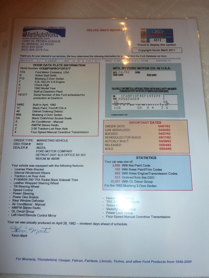 Here is a copy of the Marti Report for this Mustang, as posted on FEP -