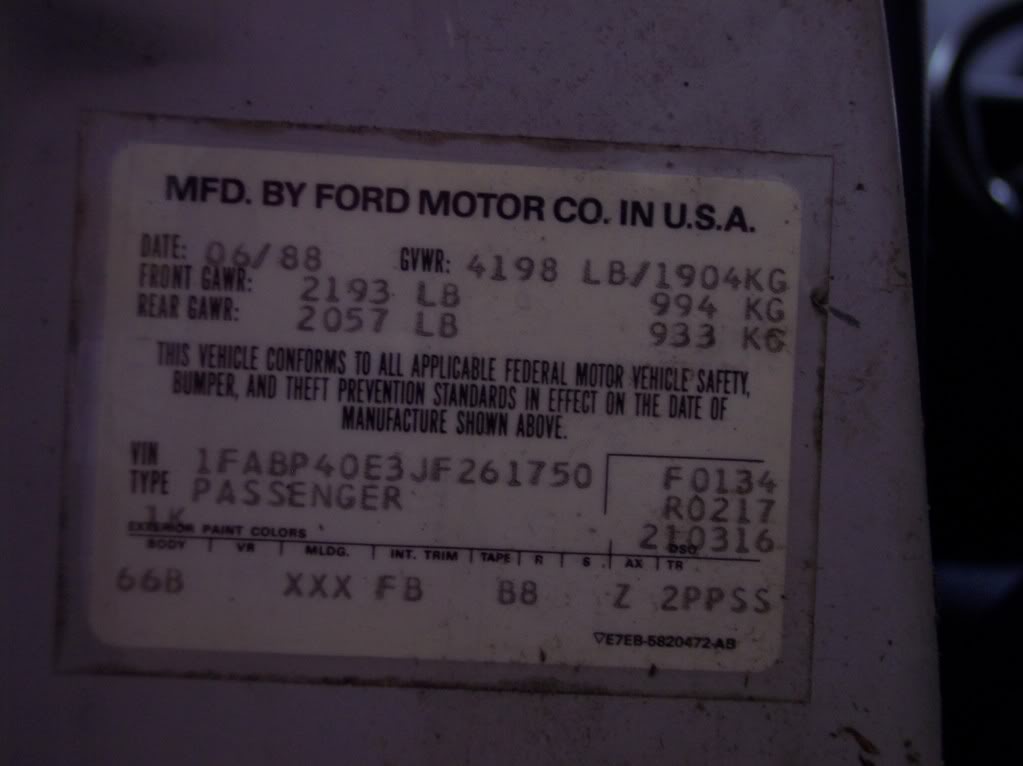 1988 SSP - VIN 1FABP40E3JF261750