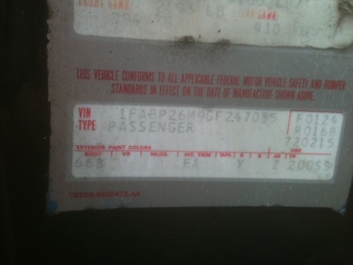 1986 SSP - VIN 1FABP26M9GF247055