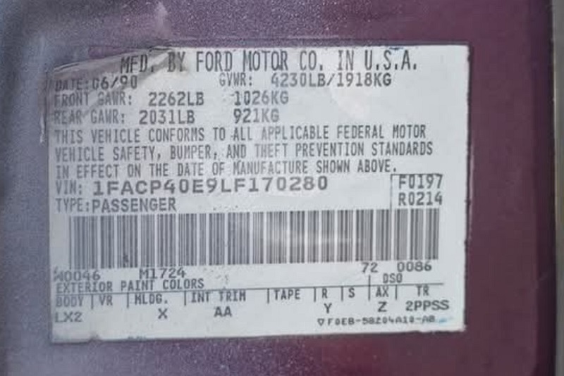 1990 SSP - VIN 1FACP40E9LF170280