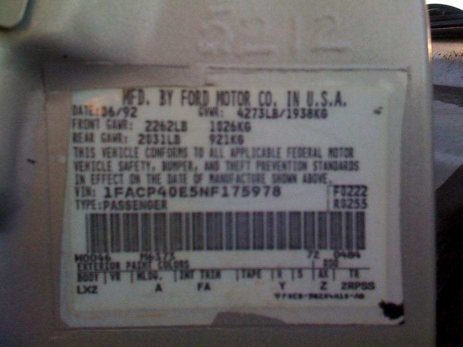 1992 SSP - VIN 1FACP40E5NF175978