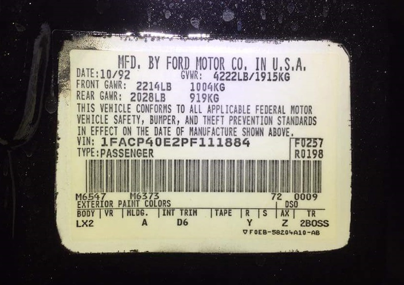 1993 SSP - VIN 1FACP40E2PF111884