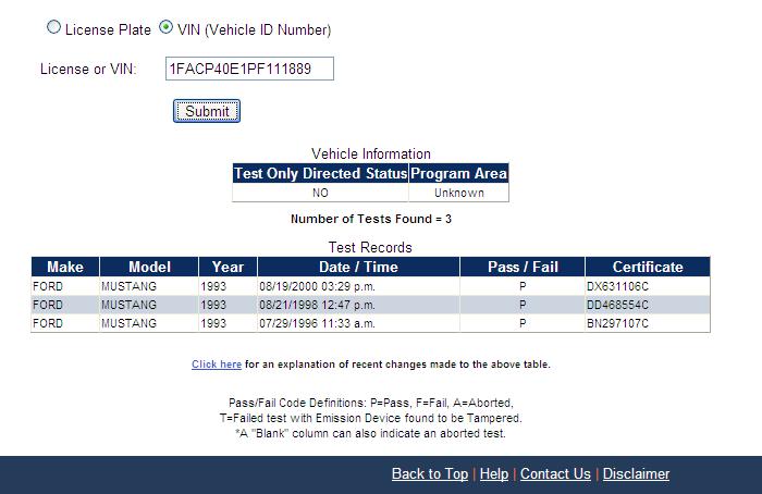 Using the State of California Smog Certificate Website to search for VINs and