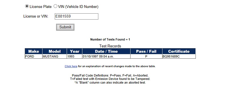 Using the State of California Smog Certificate Website to search for VINs and