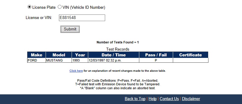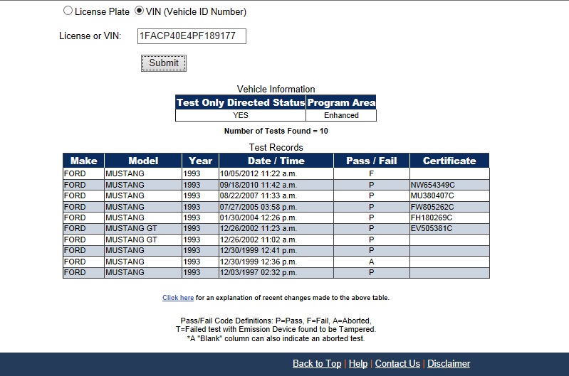Using the State of California Smog Certificate Website to search for VINs and