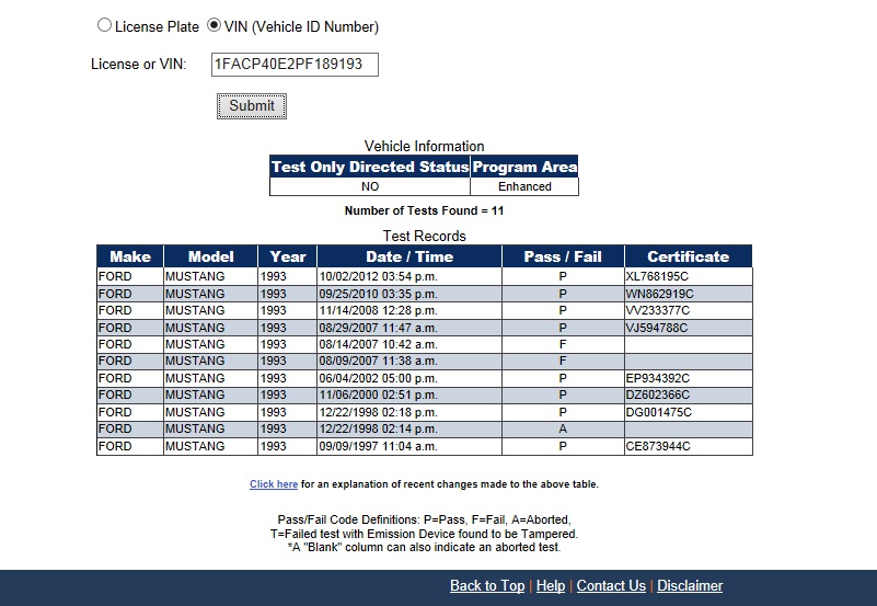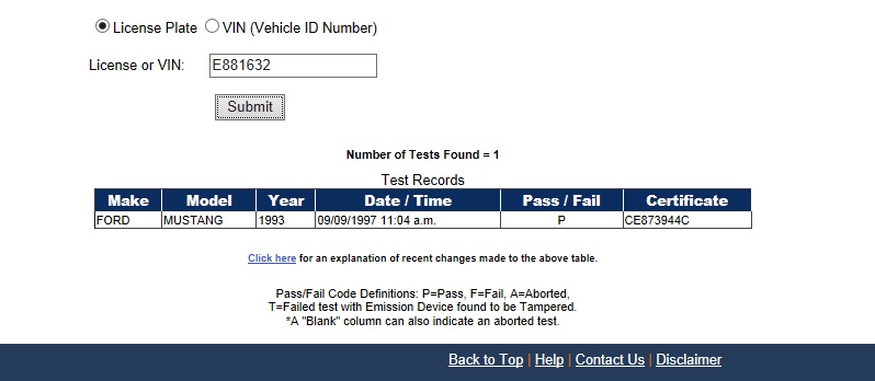 Using the State of California Smog Certificate Website to search for VINs and