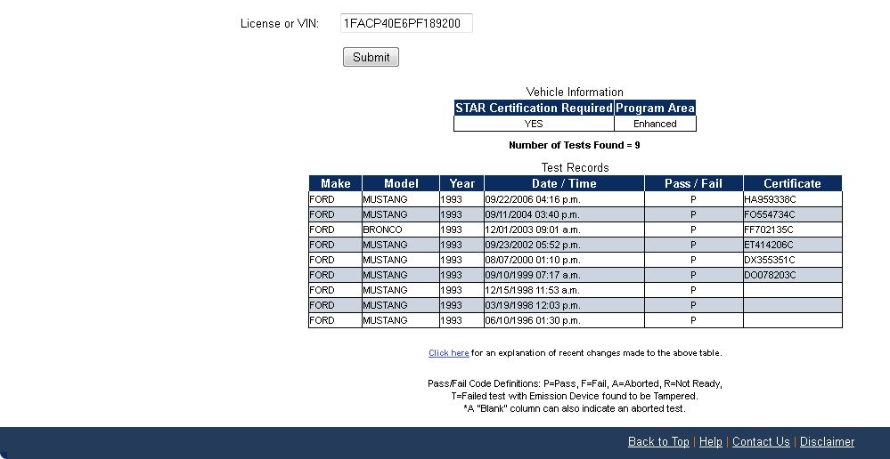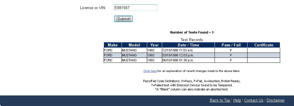 Using the State of California Smog Certificate Website to search for VINs and