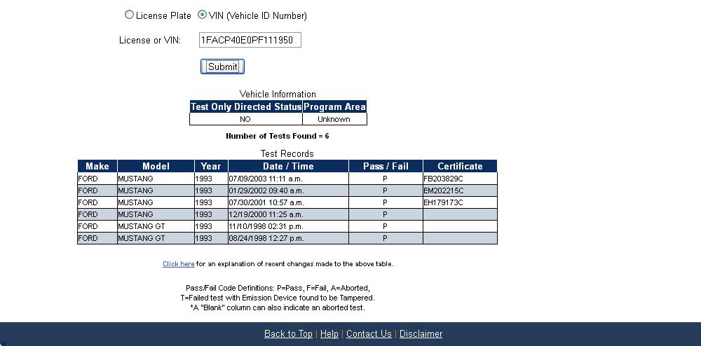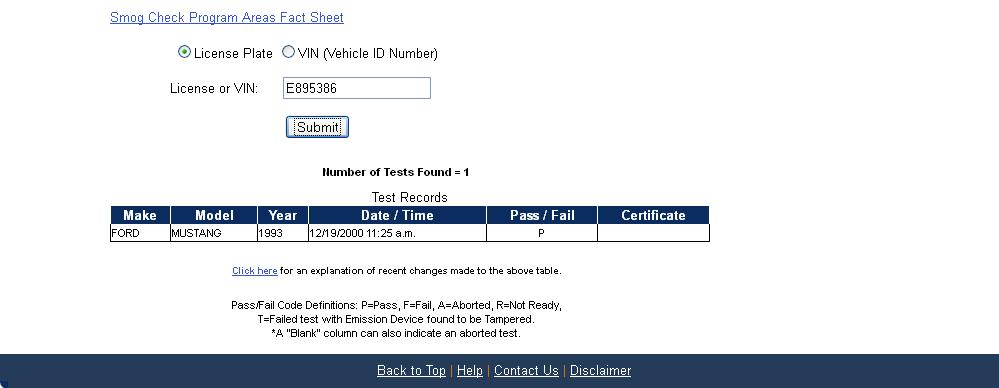 Using the State of California Smog Certificate Website to search for VINs and