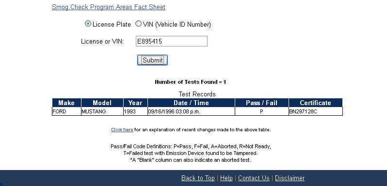 Using the State of California Smog Certificate Website to search for VINs and