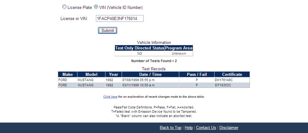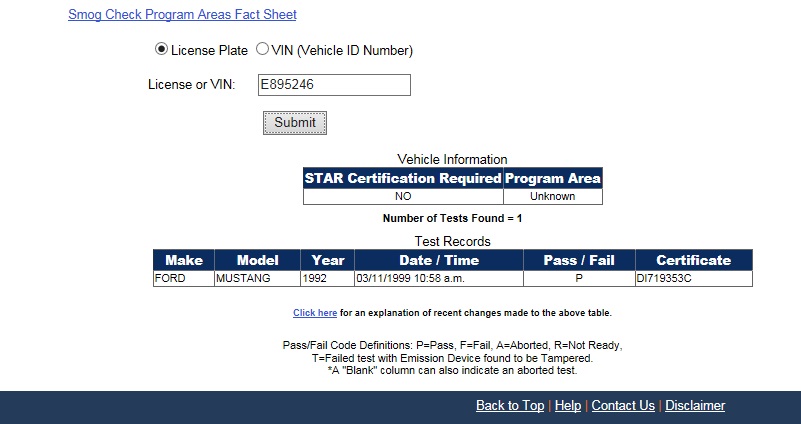 Using the State of California Smog Certificate Website to search for VINs and Used in compliance with the requirements set forth by the Department of Consumer Affairs in their authorization for proper use of information published on their website.  |