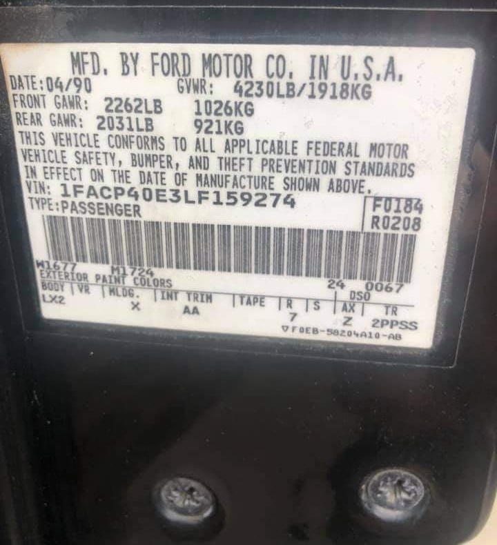 1990 SSP - VIN 1FACP40E3LF159274