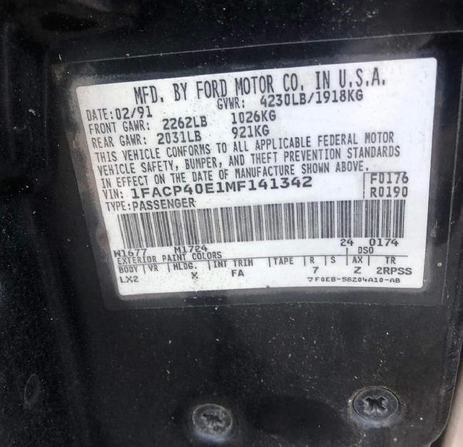 1991 SSP - VIN 1FACP40E1MF141342