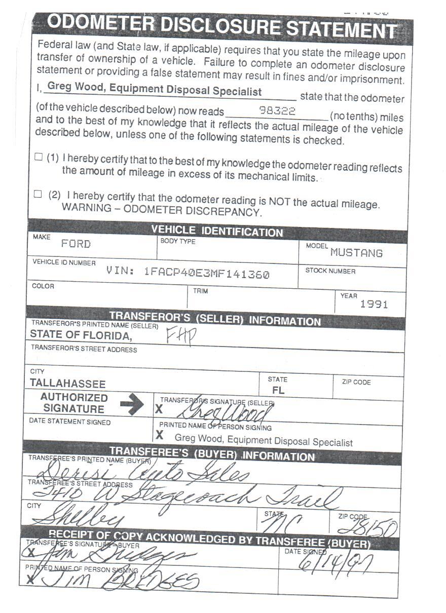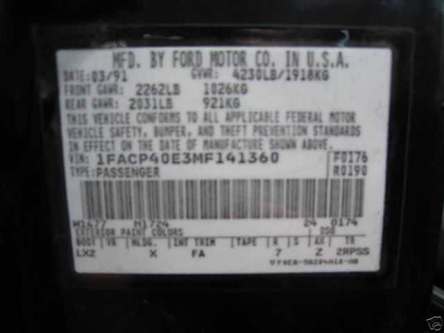 1991 SSP - VIN 1FACP40E3MF141360