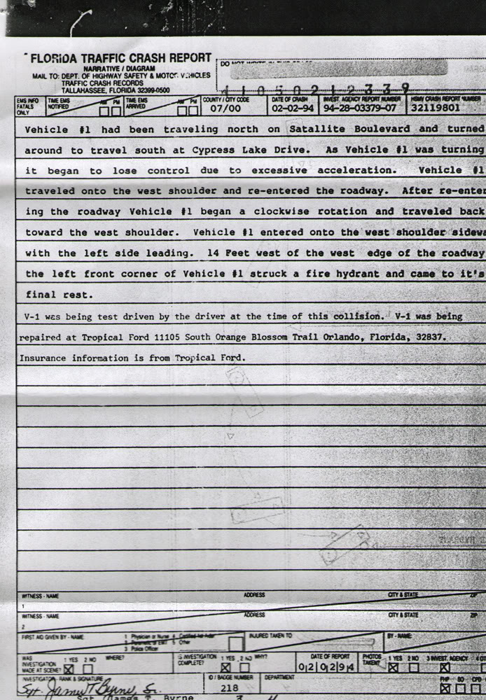There is a forum thread that discusses the accident in which this SSP was involved. Below are some of the time-of-service pictures and FHP accident report: