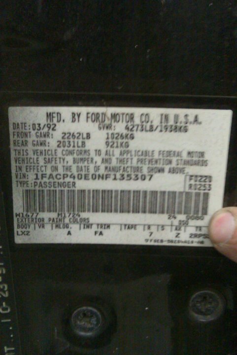 1992 SSP - VIN 1FACP40E0NF135307
