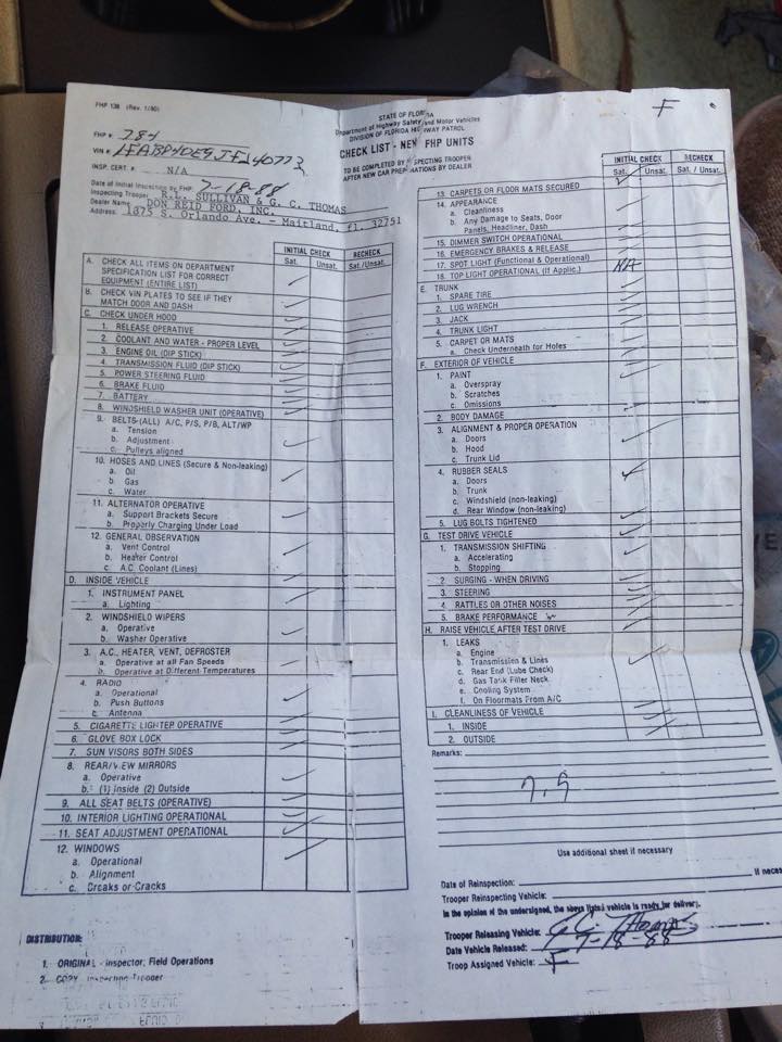 We know a range of 1988 SSP Mustangs used by the Florida Highway Patrol (DSO #24-0237)because of documentation found on 240676 and 240860. Since these cars are confirmed SSP Mustangs,