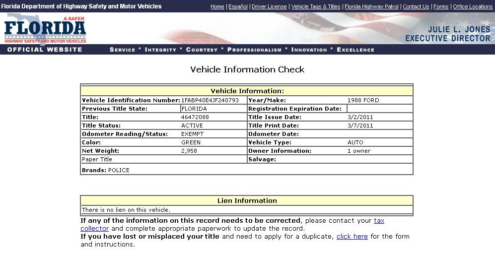 We used the State of Florida DMV Vehicle Information Search Function to search for VINs, and have