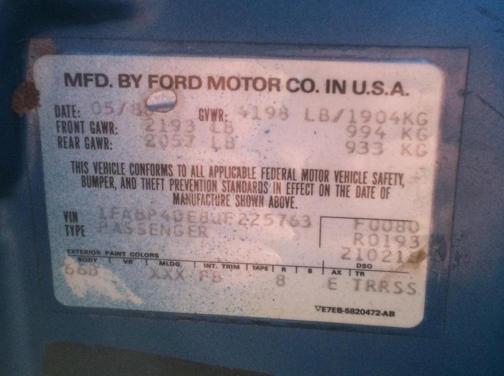 1988 SSP - VIN 1FABP40E8JF225763