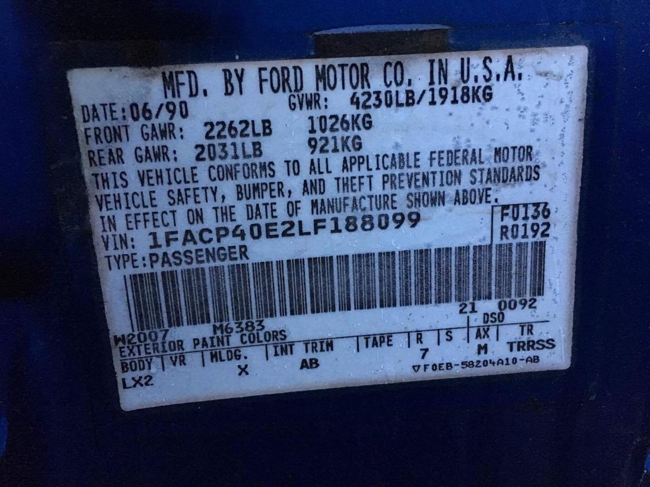 1990 SSP - VIN 1FACP40E2LF188099
