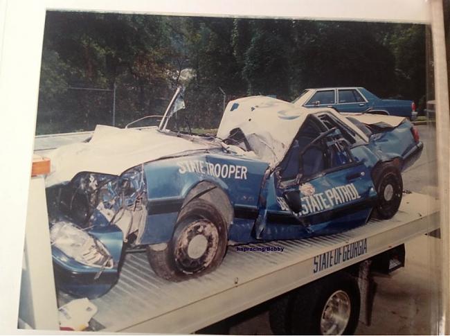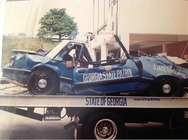 The following pictures show an in-service accident in which the Trooper miraculously recovered. The GSP rollbar obviously helped save his life -