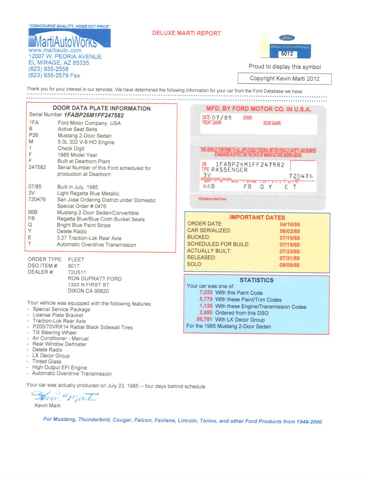 1985 SSP - VIN 1FABP26M1FF247582