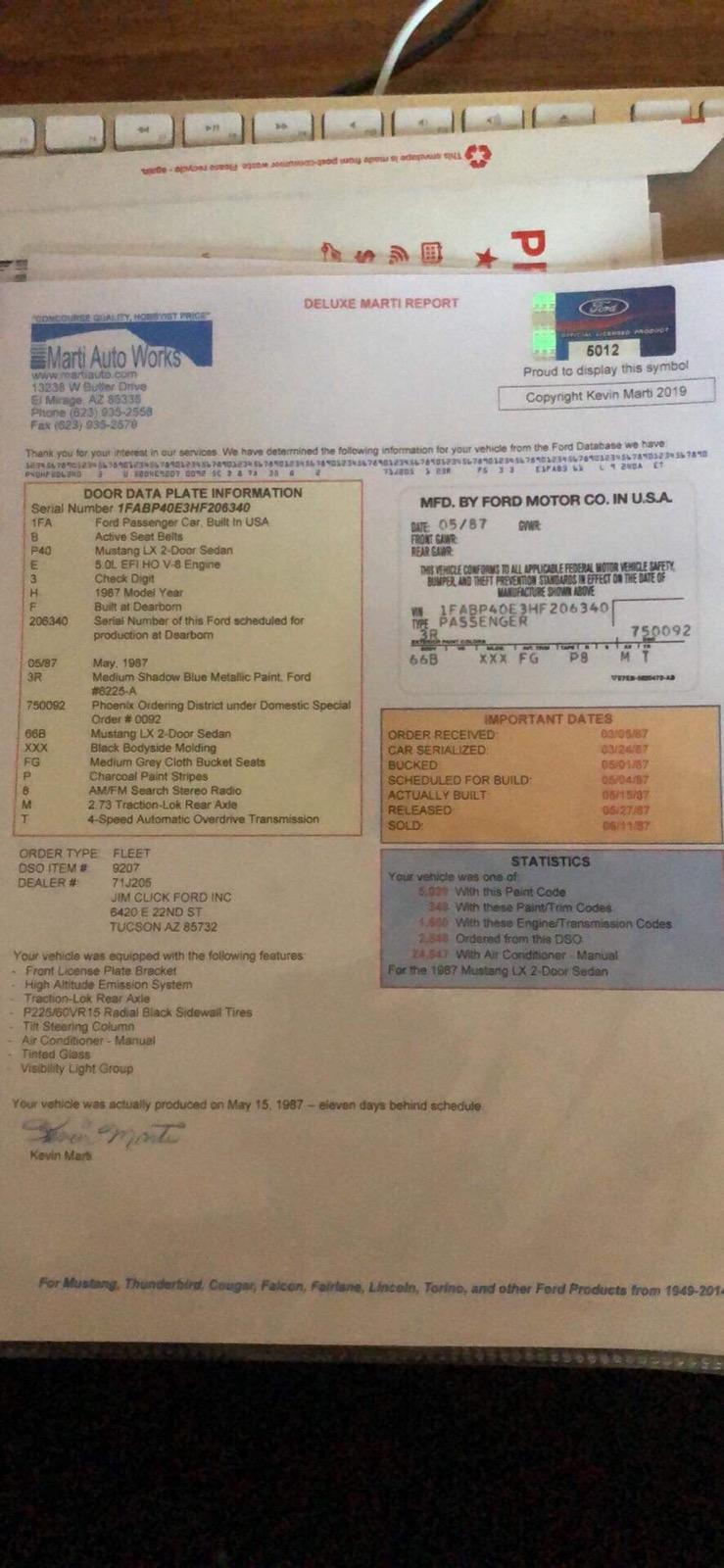 1987 SSP - VIN 1FABP40E3HF206340