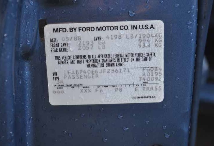 1988 SSP - VIN 1FABP40E6JF256171