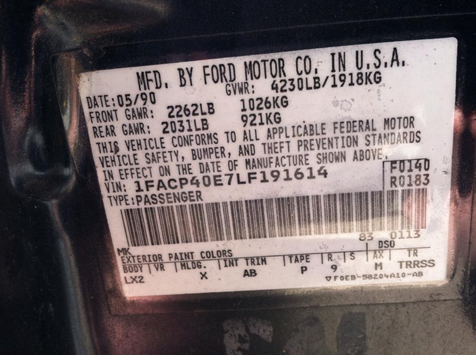 1990 SSP - VIN 1FACP40E7LF191614