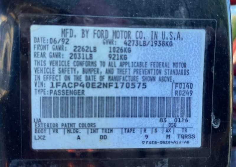 1992 SSP - VIN 1FACP40E2NF170575