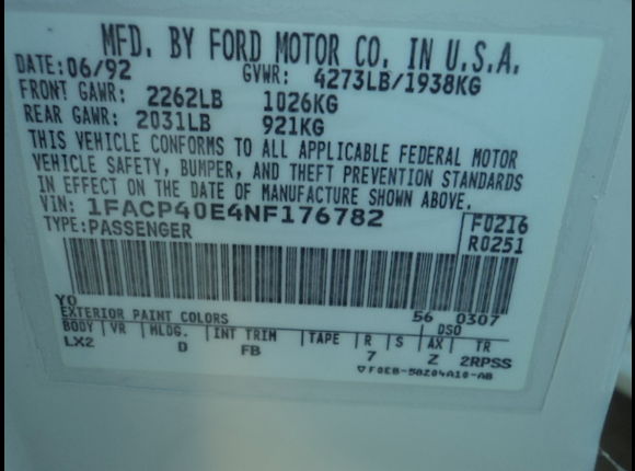 1992 SSP - VIN 1FACP40E4NF176782