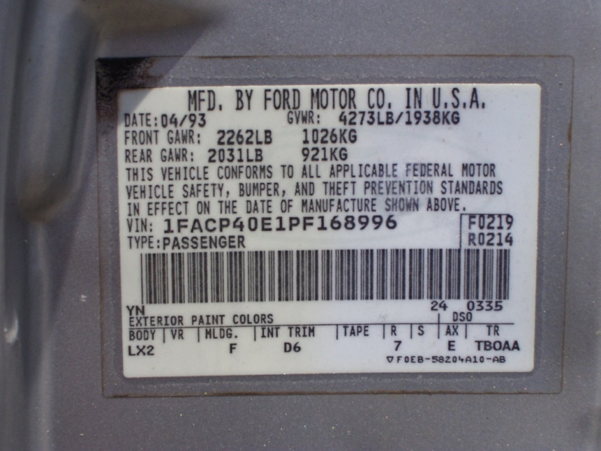 1993 SSP - VIN 1FACP40E1PF168996