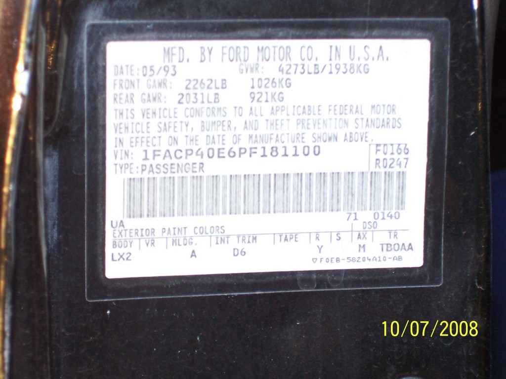 1993 SSP - VIN 1FACP40E6PF181100