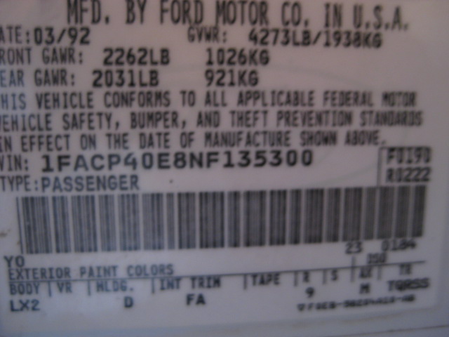 1992 SSP - VIN 1FACP40E8NF135300