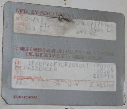 1983 SSP - VIN 1FABP26F7DF205061